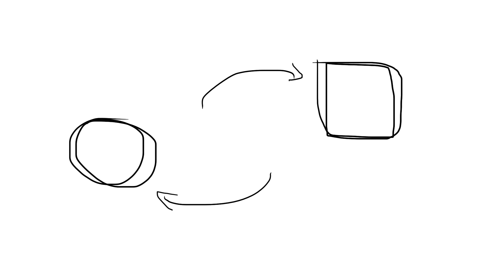 Geometric abstract design focused on two 2D flat shapes dancing to merge together, exploring which one will prevail as they interact.